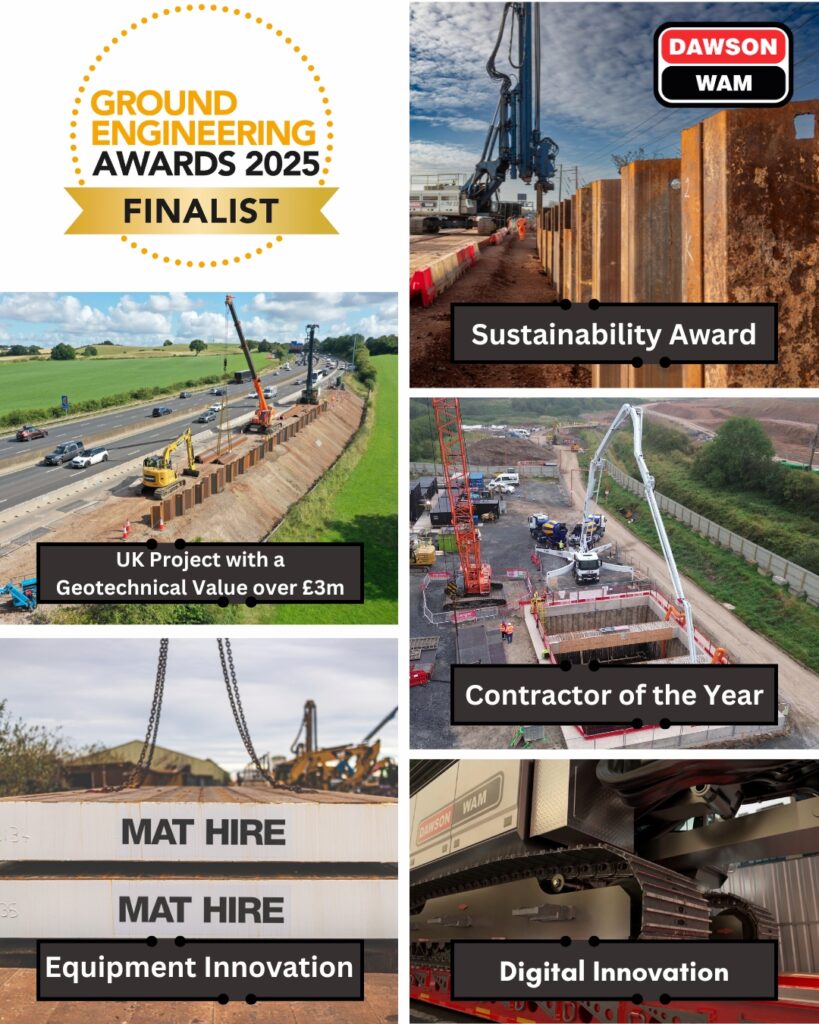 DAWSON-WAM are excited to announce that we’ve been shortlisted for five categories at the Ground Engineering Magazine Awards 2025: