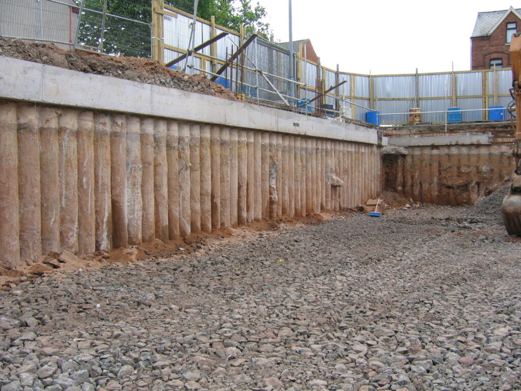 Piles were constructed using our Cased CFA system and allowed a novel design which meant both male and female piles to be reinforce with a steel beam and both male and female piles were constructed using 35N. This resulted in a secant wall which worked very efficiently given the pile diameter and excavation depth required by the client.