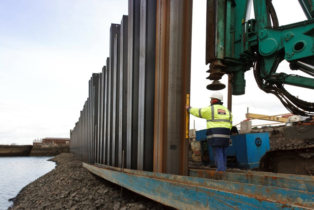 The provision and driving of some 4,300 m2 of 23 m long AZ50 steel sheet piles into the bed of the existing Abercorn basin to form the new quay wall. The sheet piles were installed by our ABI Mobilram TM 18/22 B leader system mounted on a Sennebogen SR35TB 41/380-2 chassis;