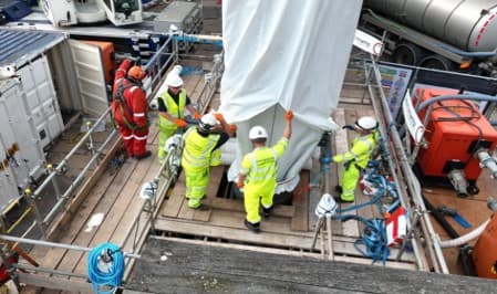 CIPP installation was completed over two weekends in June 2022 and involved the direct inversion of the CIPP lining tubes. Initially the CIPP tube was attached to a top ring turned inside out and with the use of a hydrostatic head of water inverted into the pipe. As the water is carefully introduced the resin-saturated tube is allowed to invert upon itself and progress longitudinally through the pipe in a continuous and controlled manner. Once inversion was complete the tube is cured by circulating heated water. During this process the temperature was monitored and recorded regularly at 15-to-30-minute intervals at the boiler inlet & outlet and at the thermocouples placed during inversion between the tube and the original pipe wall at the inversion and termination ends.