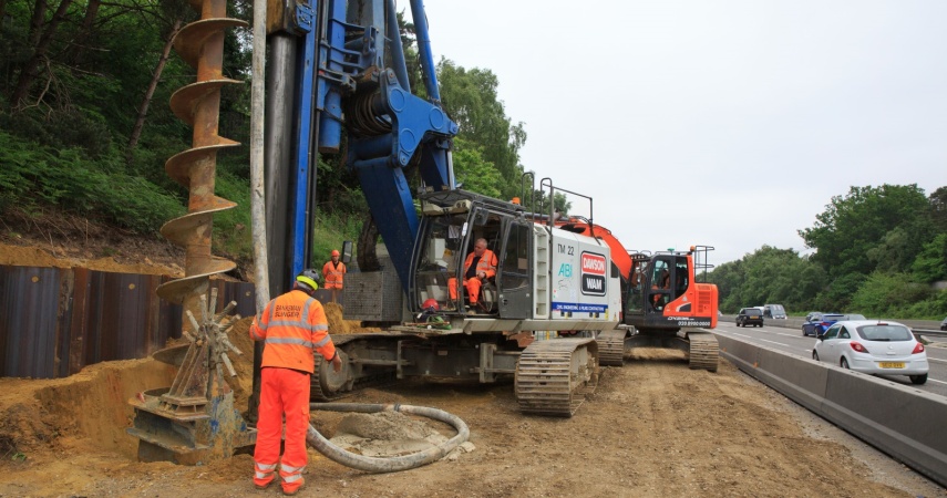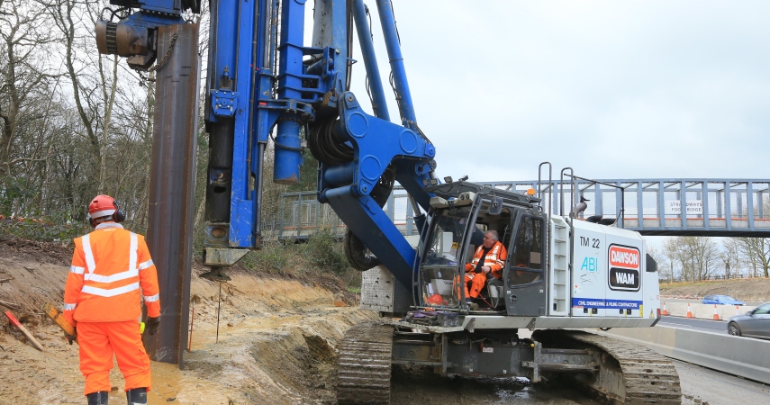 DAWSON-WAM was contracted by Balfour Beatty Major Project to construct new sheet piled retaining walls and bored concrete gantry piles to upgrade a critical section of the M3 Motorway to Smart Motorway.