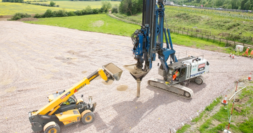 The same piling rig was then used to install over 2,000 number 300mm diameter vertical sand drains adjacent to the Westbound carriageway to assist with the dewatering and settlement of underlying soil prior to a new carriageway construction.