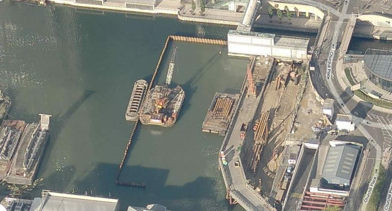 Previously BP1 Twin walled cofferdam was designed and constructed by Dawson Wam Ltd & Halcrow (now the location of Barclays Bank headquarters) and was followed on by BP2 Marine deck was designed and constructed by Dawson Wam Ltd & Doran Consulting.