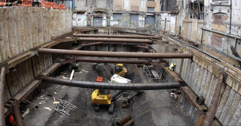DAWSON-WAM designed and installed the propping system in addition to piling operations. Propping was installed over two visits to site as excavation proceeded and was removed as the basement structure was completed by the main contractor. Basement movements were monitored and found to be lower than predicted in the design. Ground conditions consisted of made ground overlying sands and gravels to approximately 3.5m depth and the remainder of the strata consisted of firm to stiff London Clay becoming very stiff. Further to this piling works were completed within the strict noise and vibration limits for Westminster Council.