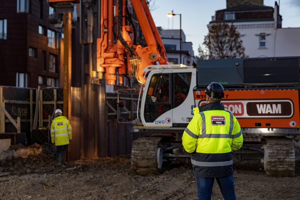 With typical London clay conditions, the underground tunnel risk, and surrounding dwellings and business’, we provided the client with a vibrationless method to install the 160 linear meters of temporary sheet piled retaining walls. These walls were being utilised as temporary works to shore the surrounding ground to allow the excavation and construction of new ground structures. We mobilised a RTG 21 which utilised a quick docking system between attachments. We were able to pre-auger the ground, pitch the piles, and install to level utilising three separate attachments, providing our client with a quick and risk-free solution. Throughout all aspects of the pile installation, third party surveying and monitoring of the tunnel was undertaken, with data reported daily to site.