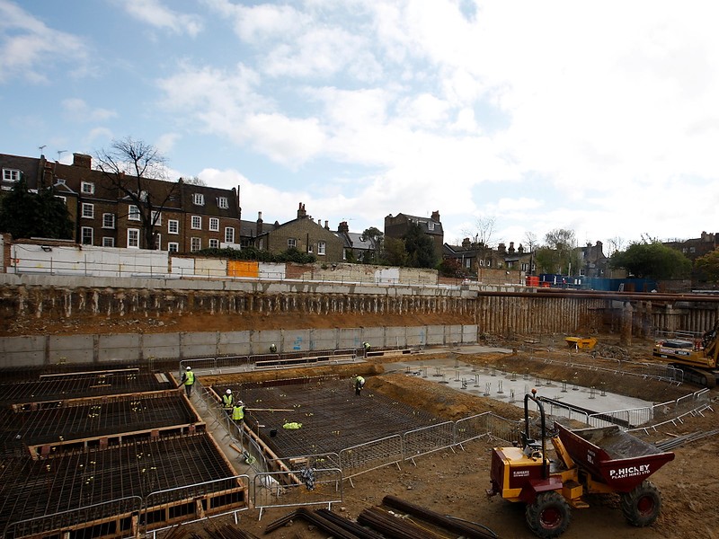 DAWSON-WAM was contracted by Osborne to provide a design and construct a retaining wall for a new basement construction for the University of Greenwich. In one area of site temporary propping was eliminated by the use of an innovative design solution which involved a king post wall solution retaining a 2m berm in front of the contiguous wall. This solution allowed the contiguous wall to cantilever whilst considerably limiting deflections. The clear advantage of the solution was that it allowed following works to proceed without obstruction and the delays cause by working around and removing temporary props.