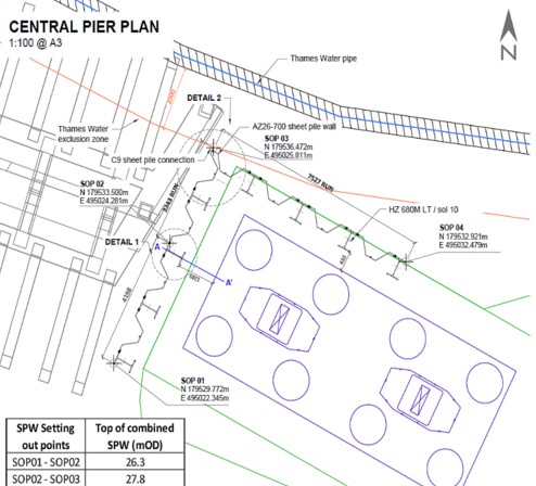 Designing and developing a high modulus HZ/AZ temporary wall for a new bridge abutment. This wall was installed using preauger/water jetting methods due to being in close proximity to a high-pressure Thames Water asset
