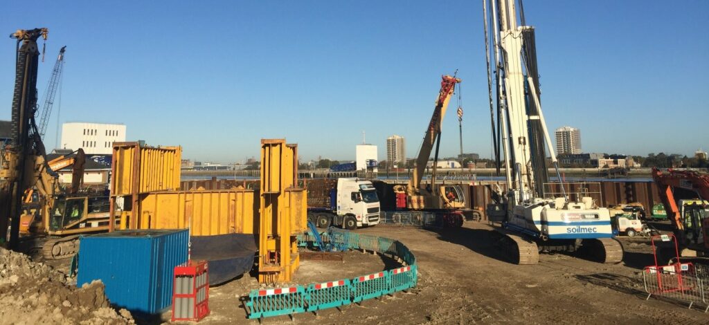 Flood wall sheet piles and load bearing piles were installed successfully and within tolerance following the removal of obstructions and the client, Berkeley Homes East Thames, have been very satisfied with all works completed on this scheme within time and budget.