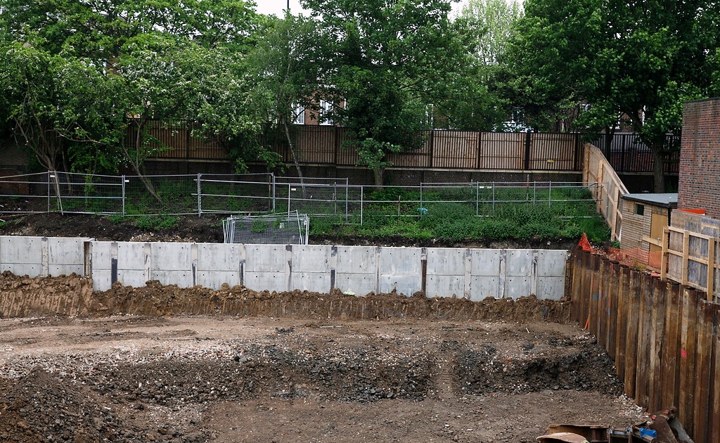 DAWSON-WAM was contracted by Brennan B&CE and Bouygues UK to design and construct a king post retaining wall for a new education facility in North London. The steeply sloping boundary of the site was formed of generally stiff clays that got stiffer with depth.