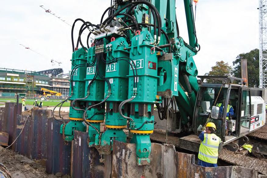 The sheet piles are Arcelor AZ17 type and approximately 11m long. Installation into the underlying London Clay, utilised one of DAWSON-WAM’s ABI flexible format 18/21 leader rigs. The wall length is approximately 165m. Installation period was over a 4 week period.
