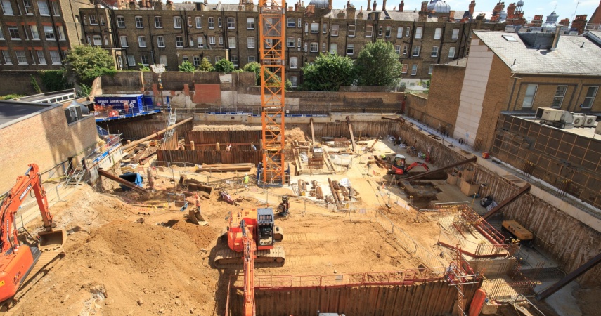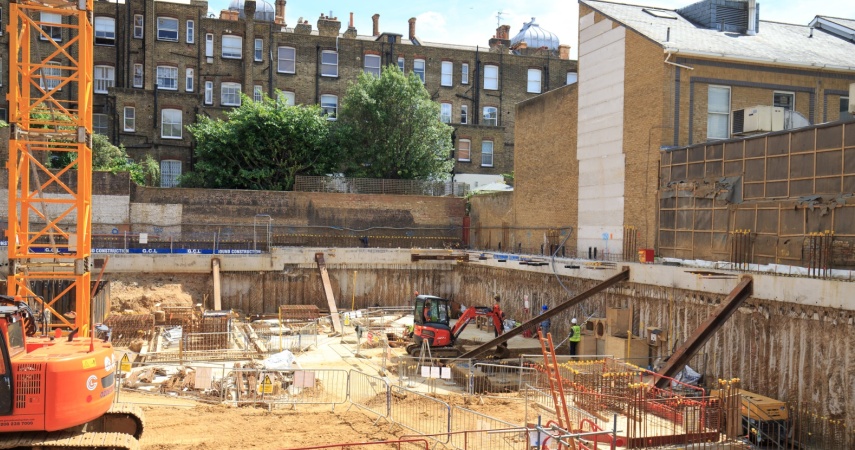 The proposed single storey basement covered the full extent of the site footprint, approximately 40m by 35m. The site was bounded on 3 sides by adjacent buildings on the remaining side by a busy road.