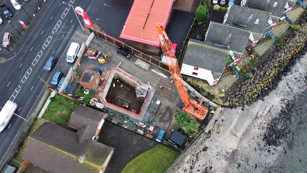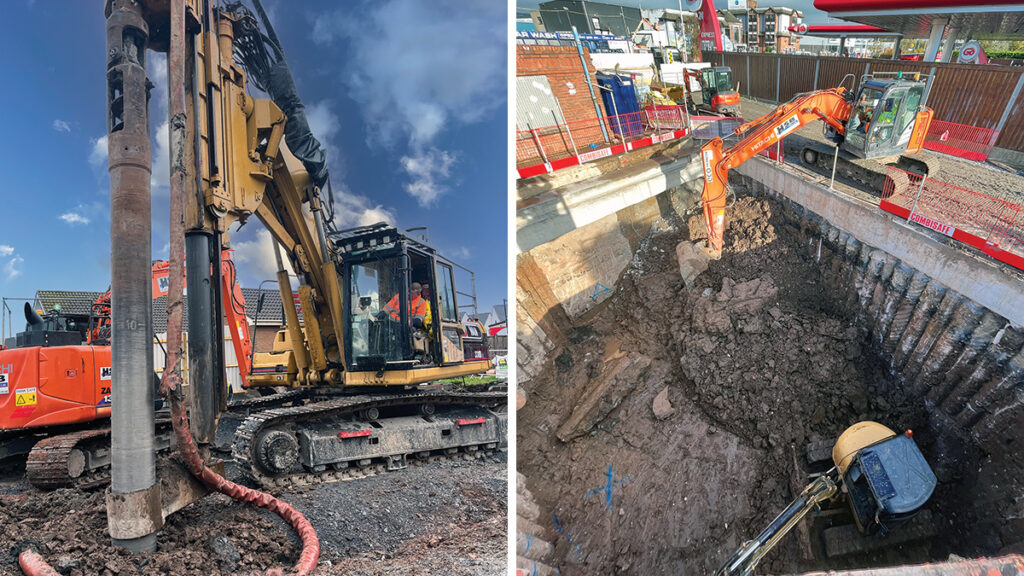For the solution, DAWSON-WAM Ltd developed a secant piled cofferdam design which deployed a hard/hard continuous flight auger with reinforcement cages in every male pile (second pile). Utilising a double auger drive motor, it was capable of coring into the mudstone while maintaining pile verticality.