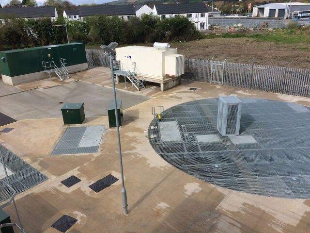 The ever-present high water table combined with Fluvial Glacial ground conditions when constructing the deep structures provided many engineering challenges. The main pumping station structure was a precast concrete segmental shaft 12.5 metre in diameter, 7 metres deep. The formation level of the shaft was below the river bed of the Mourne River and 4 metres below the water level strike in the boreholes. In a dry spell of weather when constructing the shaft, seven high head submersible pumps were mobilised to deal with the ground water, pumping a total of 341 l/s. Managing this water correctly in accordance with NIEA regulations was crucial, paying respect to both the guidelines, and the requirements of the local Fishery Agency. The installation of settlement skips and settlement lagoons along with daily Quality Assurance water samples, ensured that all silt was removed prior to discharging into the Mourne River.