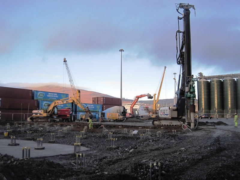 The works involved the installation of 490Nr. 450mm dia Cased CFA bored concrete foundation piles which were installed below the base slab by DAWSON-WAM leader rig systems through varying reclaimed stratum.