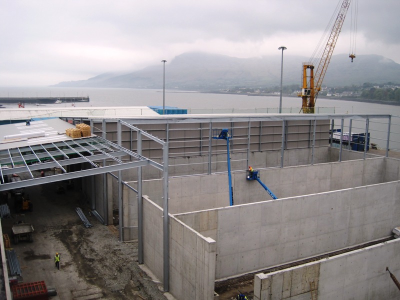 Dawson WAM Ltd were appointed by Warrenpoint Harbour Authority to Design and Construct a new 20,000ton capacity 6 bay food rated quality grain store within the active workings of the Port. The contract also entailed the design and construction of a covered loading enclosure between the new store and an existing operational store.