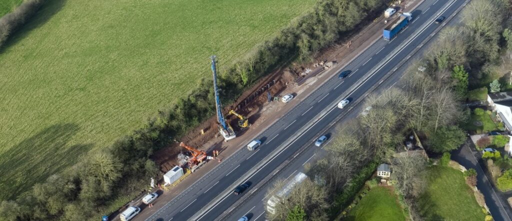 Whilst work was being carried out on the Northern Carriageway in October 2019 it became apparent to the client that a geotechnical slip was occurring on the southbound carriageway adjacent to a Rail Bridge. Dawson WAM were able to react to this slippage and under night time closures were able to mobilise, install 10m long sheet piles to depth and demobilise again. This work was carried out over a number of nights with a 4-hour working window. Due to the nature of the ground and our powerful 30VV Vibro Hammer we were able to install without a pre-augering requirement. All Plant was removed from the carriageway each night before reopening.